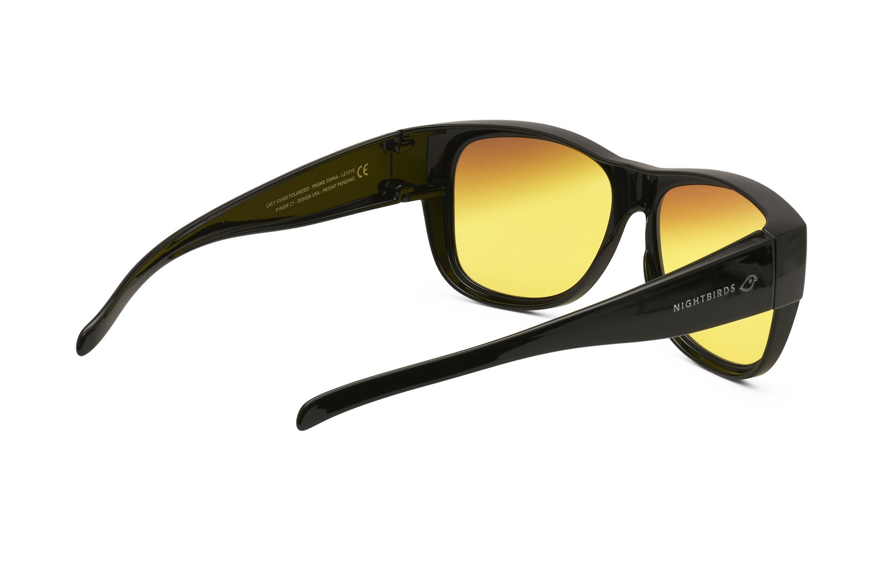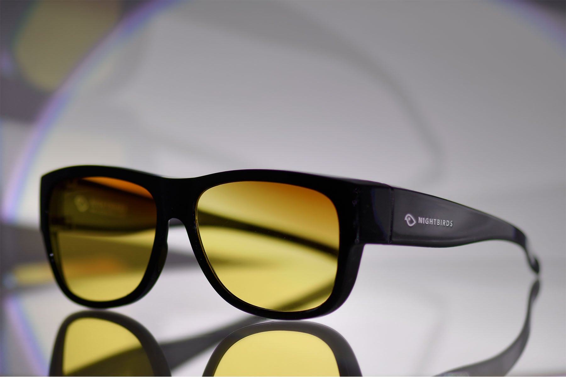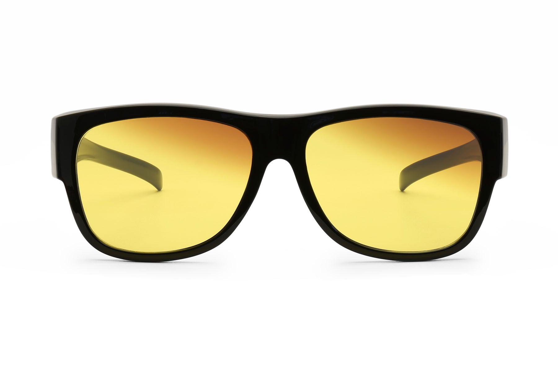 The NightHawk OTG ("Over-the-Glasses") by NIGHTBIRDS features a unique patent-pending dual-zone anti-glare lens technology that blocks up to 90% of glare from headlights and bright lights encountered at night. This lightweight "Over-the-Glasses" frame can be worn over most regular glasses up to 130mm total frame width and up to 45mm total frame height.