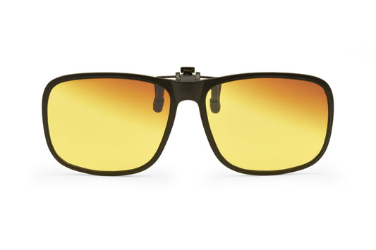 NightBirds eyewear are intended for reducing glare discomfort caused by bright lights such as vehicle headlights encountered in twilight and night-time driving conditions. Prior to use, check that glasses fit properly and do not obstruct vision. In normal use, the eyes should be aligned to look through the primary light-yellow zone of the lens. When encountering particularly bright lights, rotate the head down and away from light source to engage the secondary dark-orange zone for increased glare blocking.